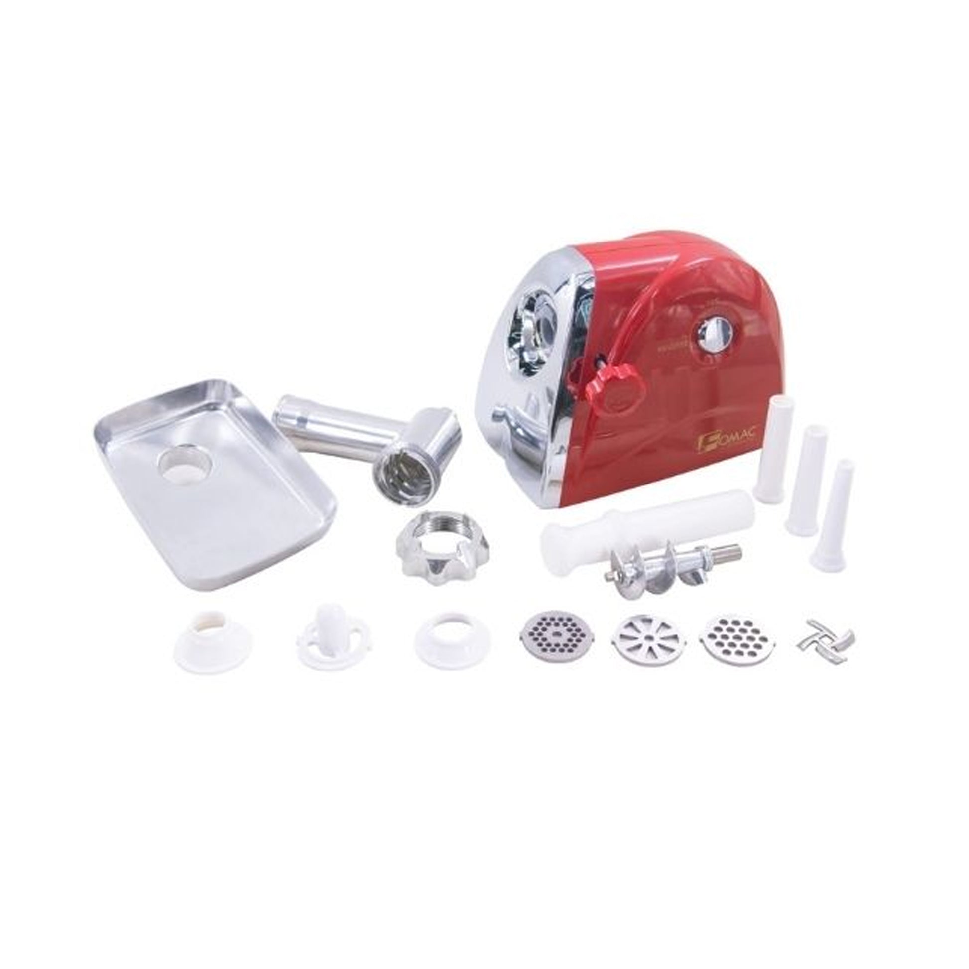 Mesin ini juga sudah dilengkapi berbagai aksesoris seperti corong sosis, pendorong daging, serta 3 jenis sarangan untuk menyesuaikan tingkat kehalusan gilingan sesuai kebutuhan.