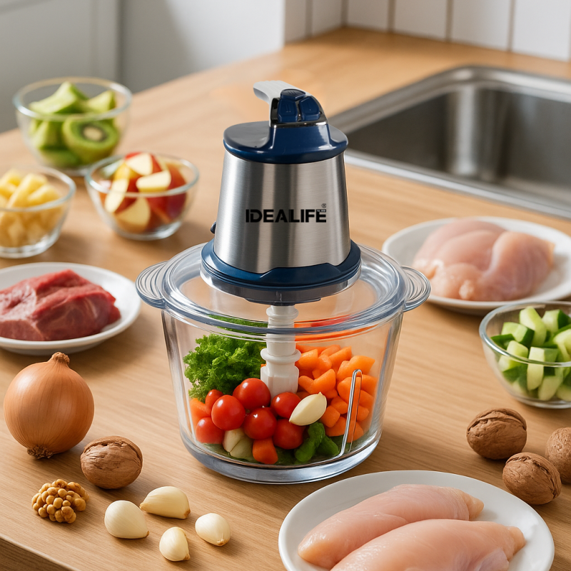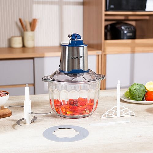 IDEALIFE IL-216A adalah chopper listrik berkapasitas besar yang dirancang untuk membantu Sobat menyiapkan bahan masakan lebih cepat dan efisien. Dilengkapi mangkuk kaca 5 liter yang kokoh dan higienis, mesin ini mampu mencincang daging, sayur, maupun buah dengan hasil halus merata.