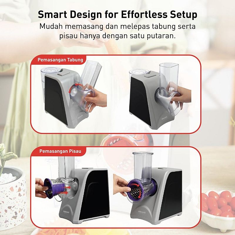Jumlah Pisau: 5 (Coarse Grater, Fine Grater, Thin Slice, Thick Slice, French Fries)