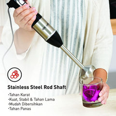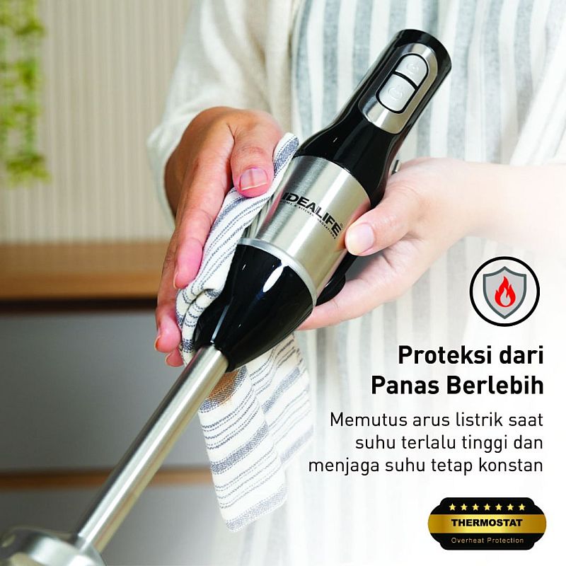 Hand Blender IDEALIFE IL-214 merupakan blender tangan praktis untuk kebutuhan dapur harian. Menggunakan motor full tembaga yang lebih kuat dan tahan lama, alat ini mampu menghaluskan berbagai bahan dengan stabil. Dilengkapi dua pilihan kecepatan sehingga bisa disesuaikan untuk mengolah sup, saus, bumbu, hingga minuman.
