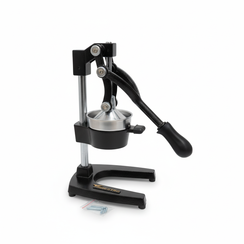 Peras Jeruk Manual MAESTRO dirancang untuk penggunaan harian dengan konstruksi body besi cor yang kokoh sehingga stabil saat ditekan. Alat ini cocok untuk kebutuhan rumah tangga, kedai minuman, hingga usaha kecil yang membutuhkan alat perasan yang awet dan mudah dioperasikan.