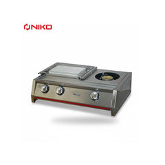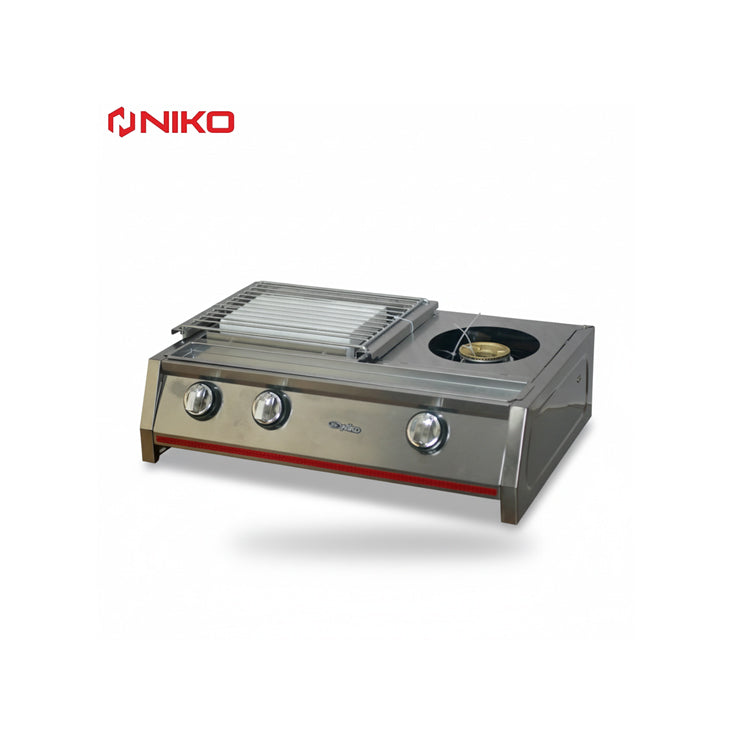 NIKO Multi Functions Gas Stove merupakan kompor gas serbaguna yang menggabungkan tungku utama dan dua tungku roaster pemanggang dalam satu alat. Didesain praktis untuk kebutuhan rumah tangga, katering, atau usaha kuliner, kompor ini memungkinkan memasak dan memanggang sekaligus tanpa perlu banyak alat.
