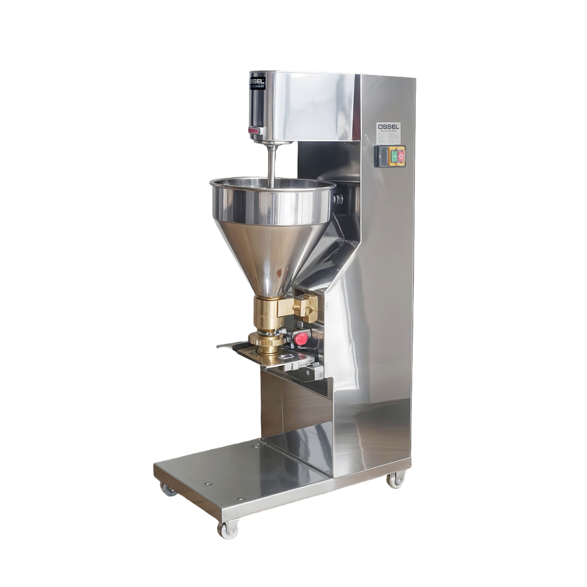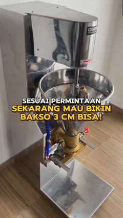 Sekarang tidak perlu repot lagi takut tangan belepotan dan capek untuk bikin bakso bulat. Tinggal masukan adonan daging ke dalam corong atas, lalu setting plat dan ring ukuran bakso yang diinginkan. Nyalakan mesin, dan bakso akan segera tercetak otomatis.